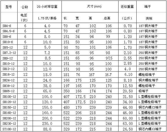 SH系列閥控式鉛酸電池采用AGM(吸收性玻璃纖維氈)技術(shù)設計,用于一般應用,例如安全和警報系統(tǒng),UPS系統(tǒng),應急燈系統(tǒng)和其他小型備用應用。電池設計壽命為5年,符合最流行的國際標準,例如IEC60896-21 / 22,BS6290-4,Eurobat Guide。電池盒和蓋子均提供V0級阻燃ABS或HBO ABS塑料。